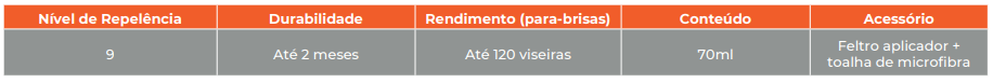 Oferece um resultado de repelência superior, melhorando a visibilidade do motorista e garantindo mais segurança ao dirigir.